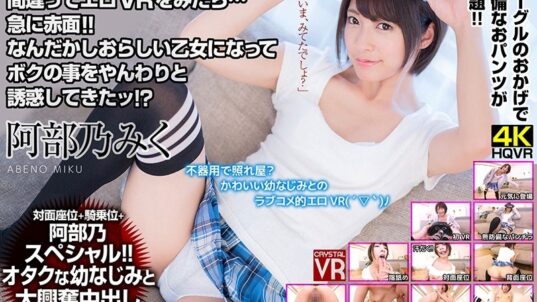 【h_1155crvr00100】阿部乃みく出演 | 【VR】阿部乃みく いつも元気で男まさりな幼なじみが間違ってエロVRをみたら…急に赤面!!なんだかしおらしい乙女になってボクの事をやんわりと誘惑してきたッ!?[ハイクオリティVR 美少女 幼なじみ パンチラ ミニスカ 汗だく ニーソックス 騎乗位 中出し VR専用 単体作品の人気作:FANZA配信:2018-07-12]【FULL動画】